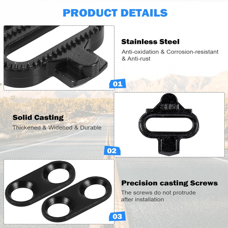 - 【Excellent Material】Our cycling cleats are made of high-quality 304 stainless steel and are precision solid cast to resist rust, drops and abrasion. Whether in wet environments or high-frequency use, it can effectively withstand a variety of harsh conditions, maintain superior durability, and provide long-lasting and reliable performance.