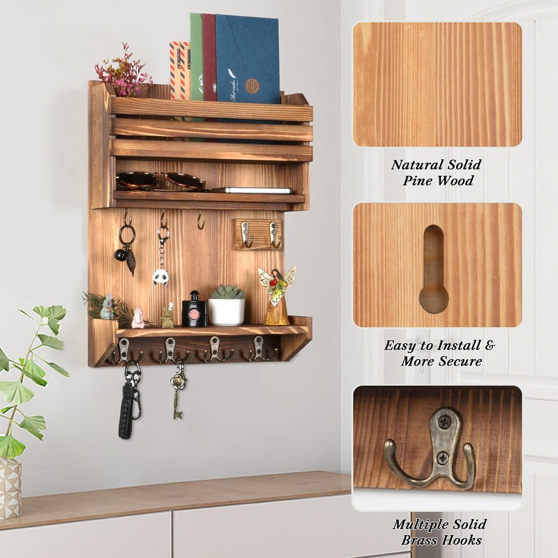- MULTIFUNCTIONAL STORAGE: Wall-mounted key and mail holder make the most of your wall space, keep your home and office simple and tidy. It is perfect for storing mails, keys, anyards, dog leashes, sunglasses, bags, hats, etc.