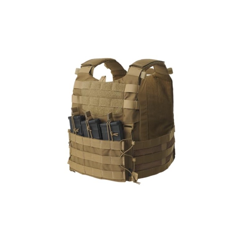 Modular Tactical Vest The Guardian Military Set The modular tactical vest The Guardian Military Set is the basic equipment for professionals in active military service. It consists of three main elements: the tactical vest Guardian Plate Carrier, two modular side belts Guardian Cummerbund and the Guardian Flap front plate. The set is designed to meet the demands of the modern soldier. The Guardian Military Set has a modular design, so it can be freely expanded with additional elements. In this way, each user can customize their set to the tasks they are performing. Plate Carrier: Safety and Quick Access The Guardian Plate Carrier military vest serves as a base for expanding your equipment. It has up to three basic functions. First, it is a carrier for ballistic plates. The front and rear pockets are designed for carrying ballistic protection. The elastic material makes it easy to insert and remove the plates. This provides better protection against shrapnels, bullets and other injuries. Secondly, the plate carrier allows easy access to the equipment being carried. The vest is compatible with the MOLLE/PALS system, so you can attach any gear to this standard. The Guardian range offers several such accessories. Third, as an integral part of military equipment, the plate carrier is also available in common and commonly used camouflage colours to provide the user with better camouflage in their tasks. The Guardian Military Set from Helikon-Tex is available in solid colours or popular camouflage patterns.