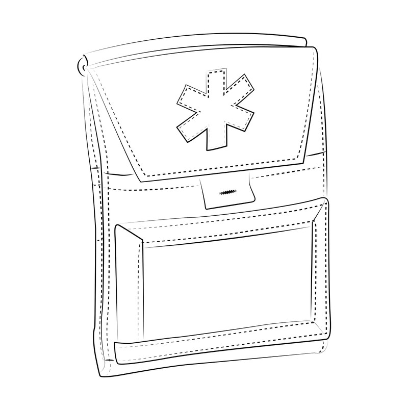 - Reflective paramedic cross. Folding wallet construction, Velcro closure. Dimensions 15 x 11.5 x 4 cm - 5.91 x 4.53 x 1.57 in.