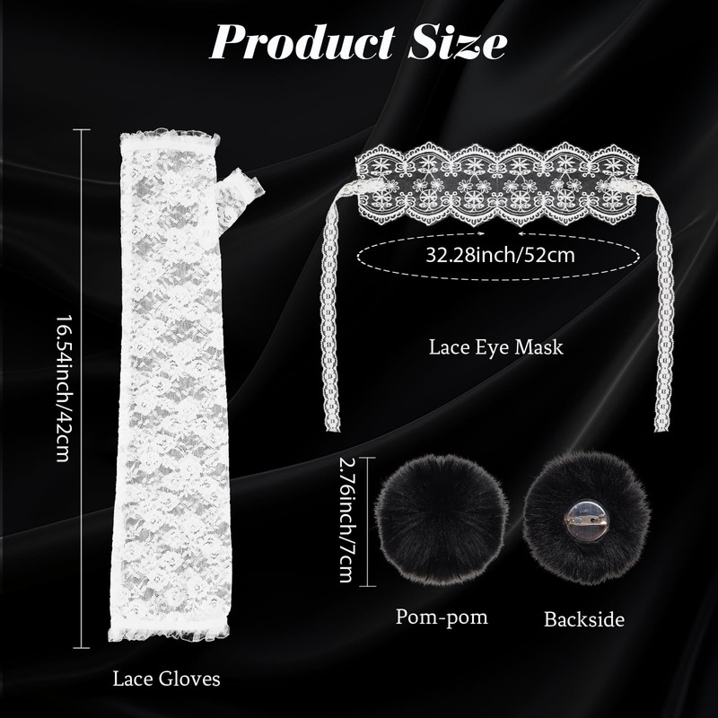 - Complete Bunny Costume Set: This black bunny costume for woman set includes everything you need for a standout look—1 white bunny ears, 1 choker, 1 rabbit tail, 1 white lace eye mask, and 1 pair of gloves. A full, coordinated set to complete your outfit with ease