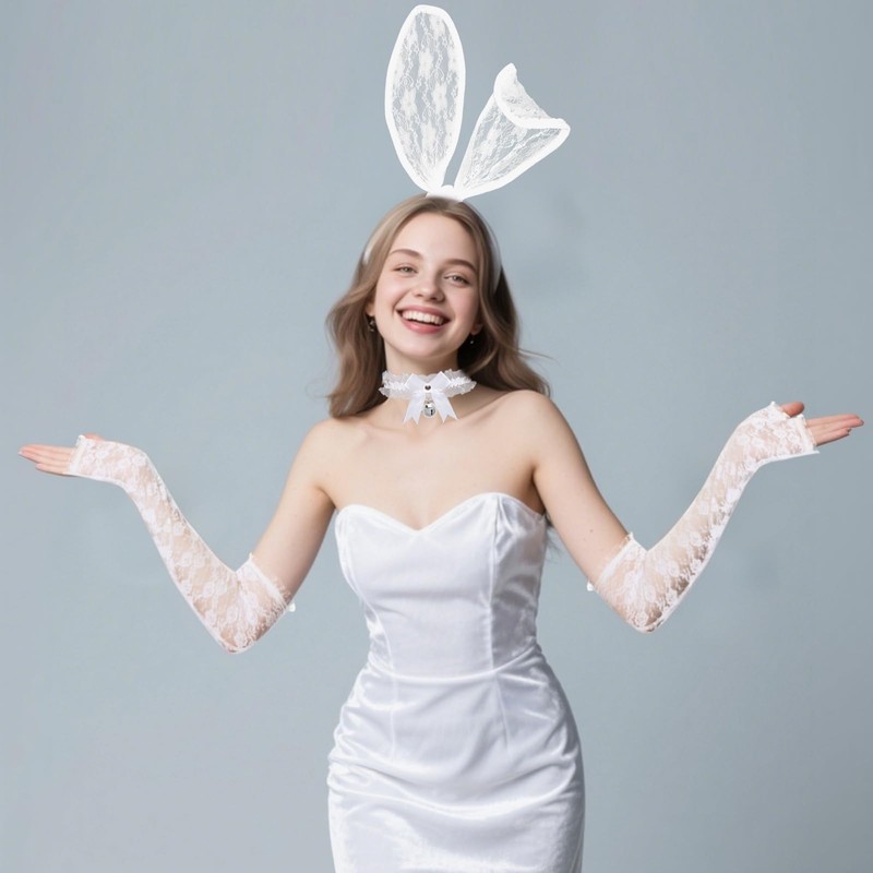 - Soft and Comfortable Materials: Crafted from high-quality, soft fabrics and delicate lace, this white lace bunny costume is designed for both comfort and durability. Feel confident knowing the materials are gentle on your skin and built to withstand all-day wear without tearing