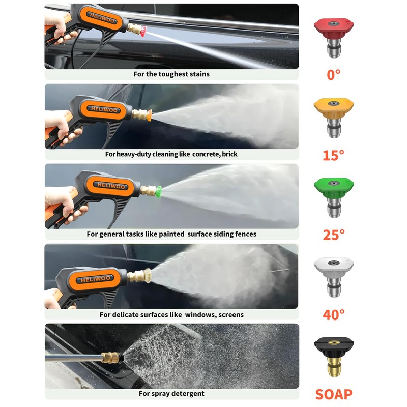 Heliwoo 5000PSI Pressure Washer Gun with Foam Cannon & 25ft Power Washer Hose, Pressure Washing Kit with 15" Extension Wand & 7 Nozzle Tips, 3/8" Quick Connector & M22 15mm/14mm Fittings