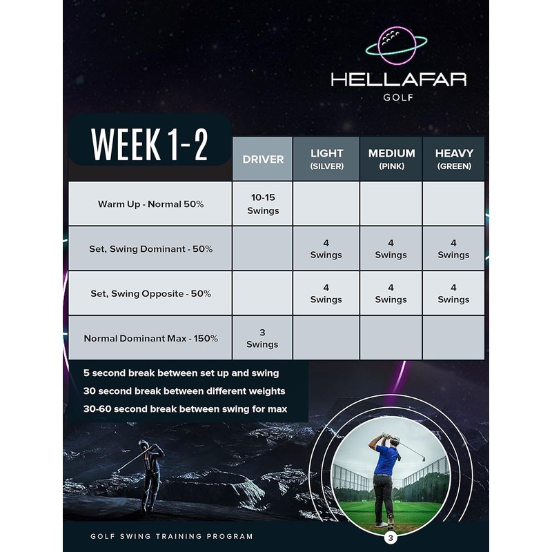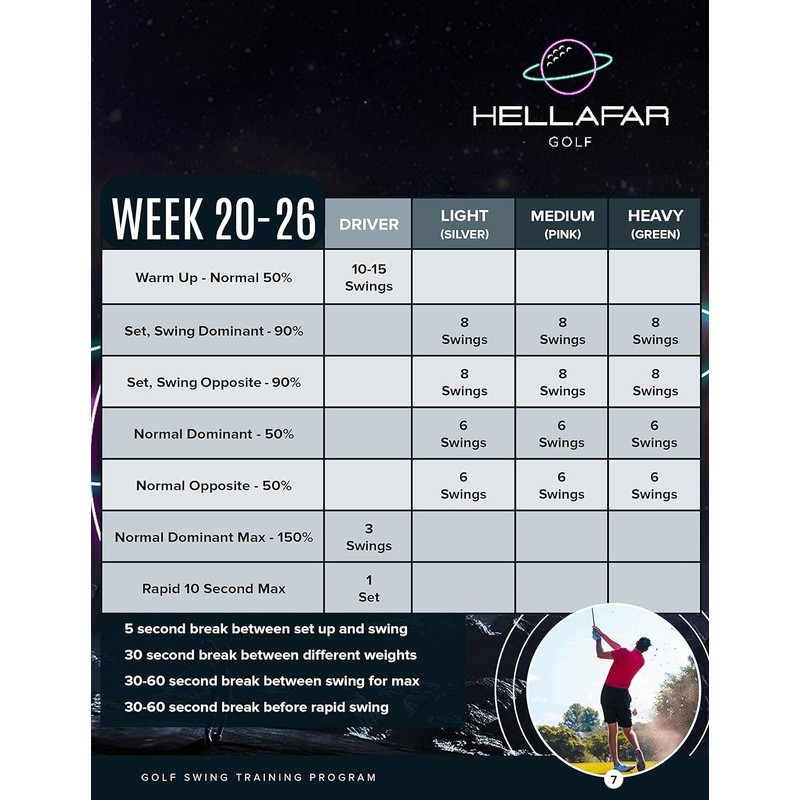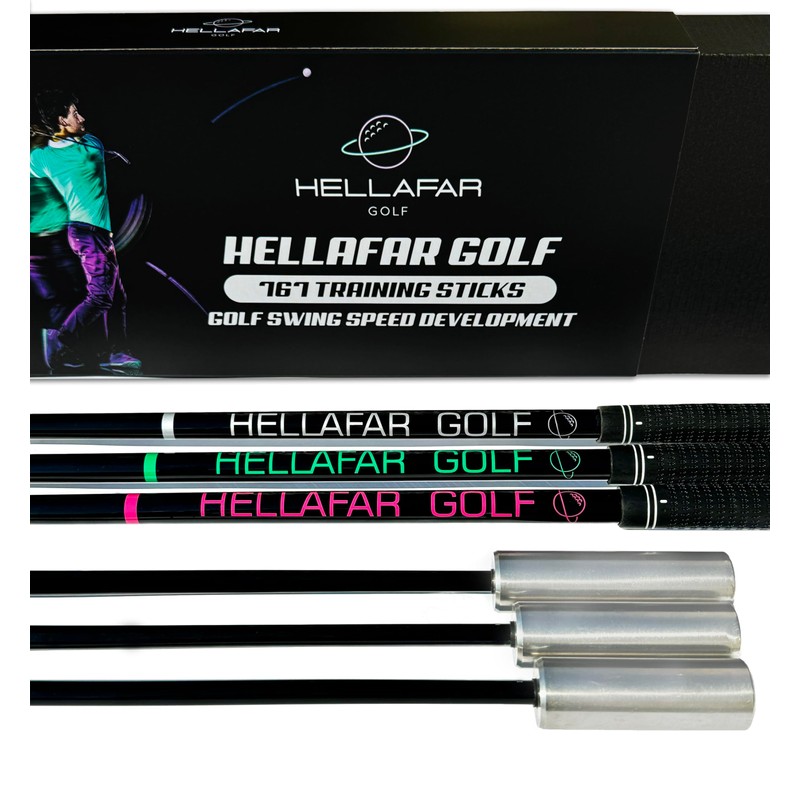HELLAFAR GOLF Golf Swing Speed Training Sticks | Increasing Club Head Speed and Distance | 6 Month Swing Stick Training Program | includes 3 Weighted Golf Speed Sticks w/Bonus Stretch Program