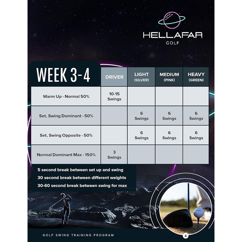 - WEIGHT RANGE - HELLAFAR GOLF's Weighted Speed Training Swing Sticks have three different weights varying on the players swing. (285g, 315g, 355g)