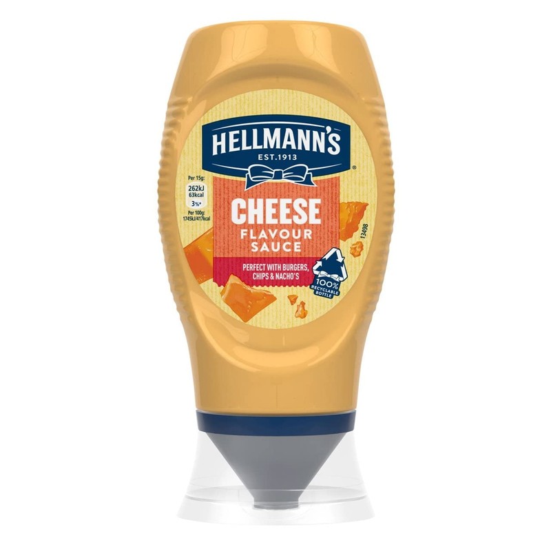 Hellmann's Cheese Flavour Sauce ist perfekt zum Quetschen auf eine Vielzahl von Gerichten – probieren Sie es auf Nachos, Burgern oder Chips. Ideal, um Ihren Mahlzeiten eine cremige, käsige Note zu verleihen. Die perfekte Käsesauce für Ihren Grill, cremig und befriedigend, es ist der perfekte Belag für Nachos, Jackenkartoffeln, Fajitas oder zum Eintauchen Ihrer Pommes hinein. 100 % Recycelbare Flaschen - Echter Geschmack, weniger Abfall, Diese käseige Sauce ist für Vegetarier geeignet und glutenfrei.