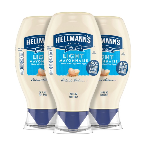 Hellmann's Light Mayonnaise Pack of 3 Light Mayo Squeeze Bottle For a Creamy Condiment for Sandwiches and Simple Meals Made With 100% Cage-Free Eggs 20 oz