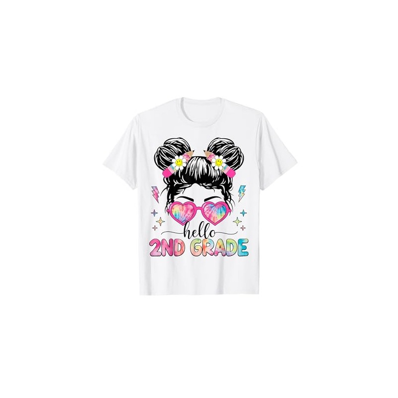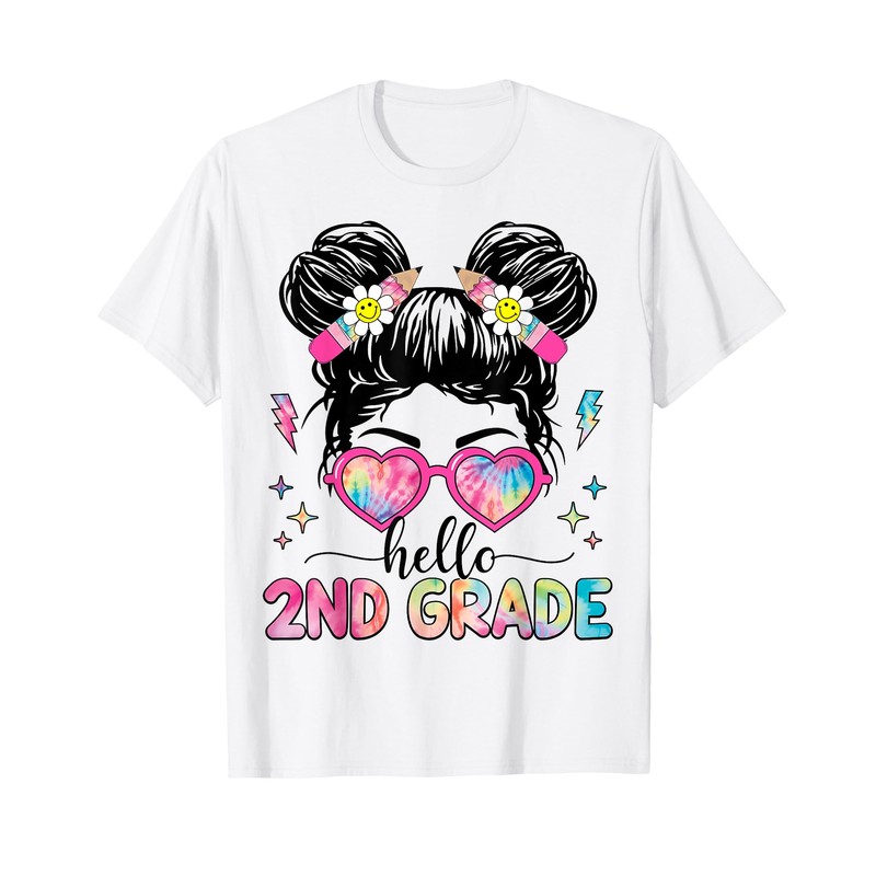 Hello 2nd Grade Messy Bun Girl Back To School First Day T-Shirt