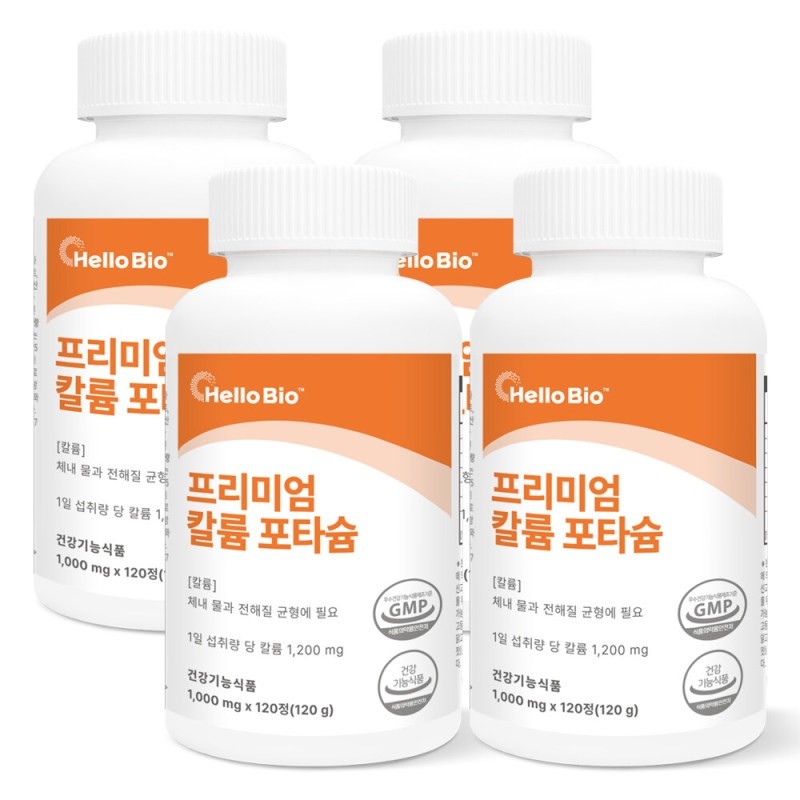 헬로바이오 프리미엄 칼륨 포타슘 수분 전해질 밸런스 120캡슐 4박스