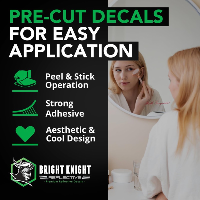 These decals will be for mirror applications, automotive rearview mirrors, side mirrors, bathroom vanity mirrors, pocket compact mirrors, etc. These can also be applied to many other items, such as phones, phone cases, laptops, tumblers, iPads, Stanley cups, etc.