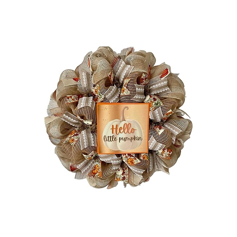 Hello Little Pumpkin Handmade Deco Mesh Wreath