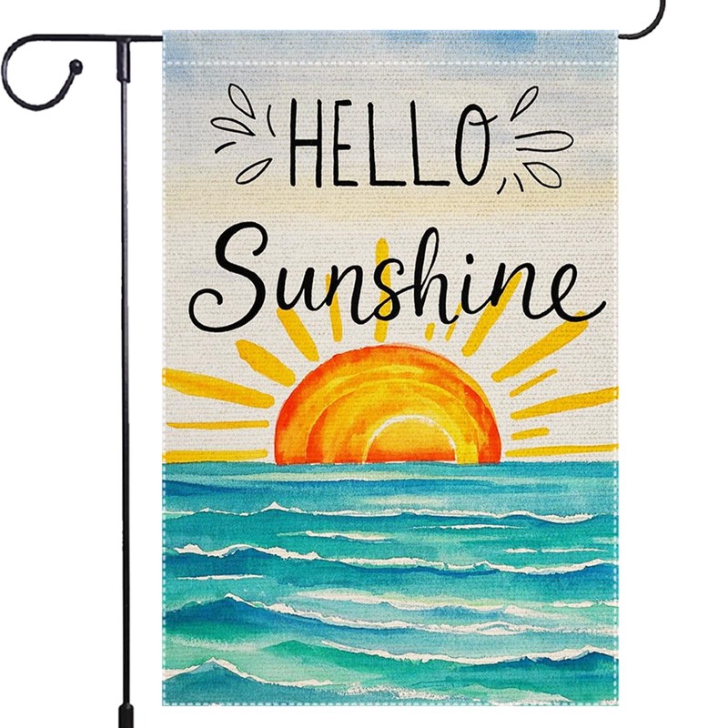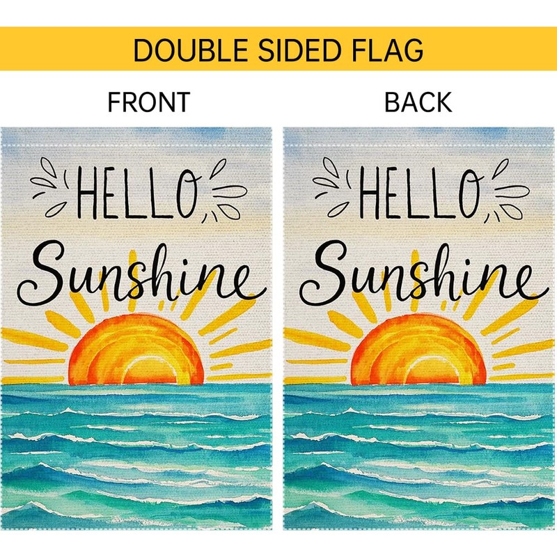 Hello Sunshine Summer Garden Flag Summer Garden Flags 12x18 Inch Double Sided Burlap Small Farmhouse Home Lawn Yard Seasonal Outside Holiday Decoration Flags