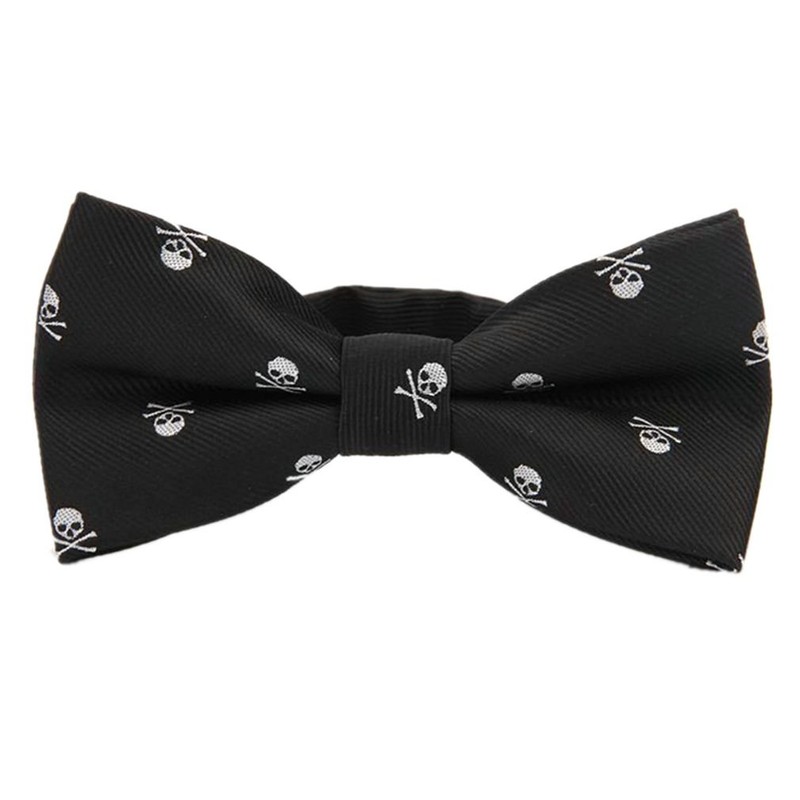 Hello Tie Men's Bowtie Skull Pattern Design Bow Ties, White Skull, One Size