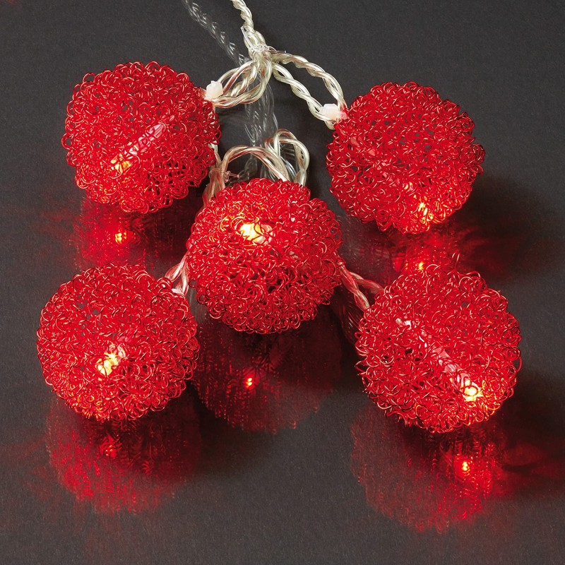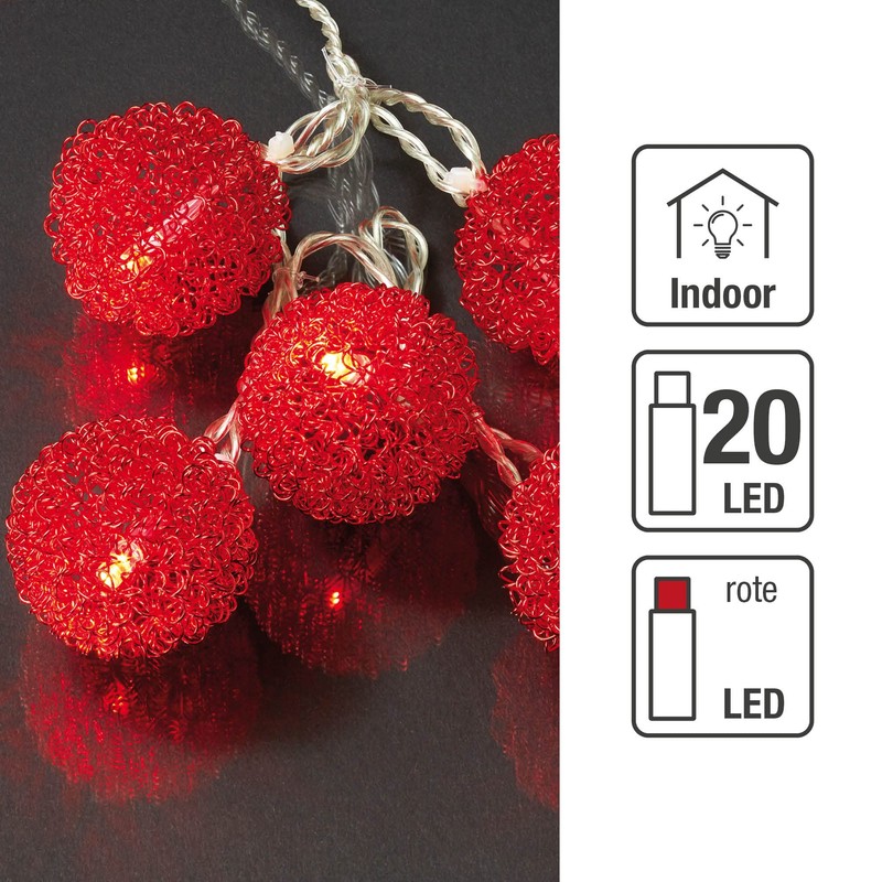 hellum LED Lichterkette mit Metallbällen rot 20 LED weiß, 285cm Lichtlänge, Indoor, Transformator, 5m Zuleitung, 576344