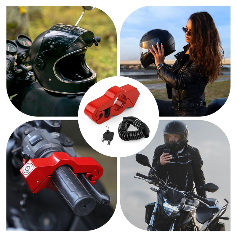 Helmet Lock & Brake Lock, Practical Motorbike Handlebar Lock Motorcycle Locks Bike Locks Combination to Protect Your Motorcycle from Losing (Red)