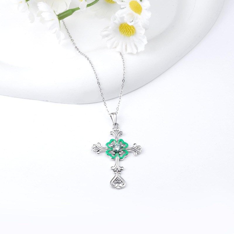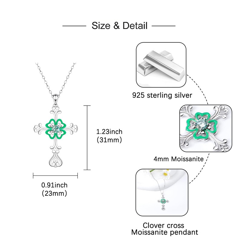 - Material: Four-leaf clover cross Moissanite pendant is made of 925 sterling silver inlaid with green Moissanite, four-leaf clover surface drops green glue, the production process is exquisite and meticulous. Nickel free, lead free, hypoallergenic.