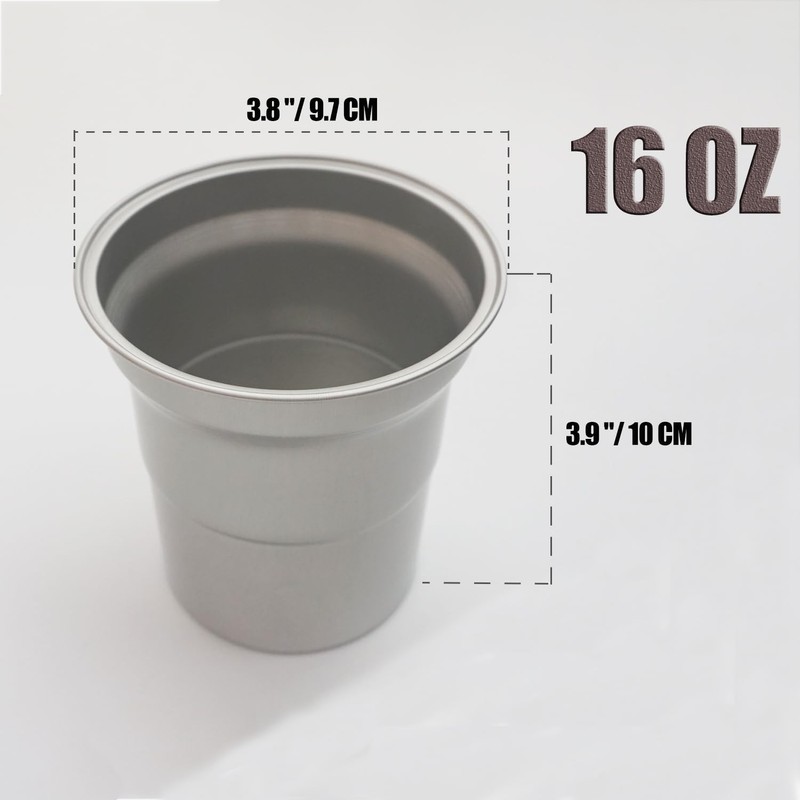 - Stackable 16OZ aluminum drinking cups - size is perfect and could be stack into a small stack to save the place on the table, in the parties or going out