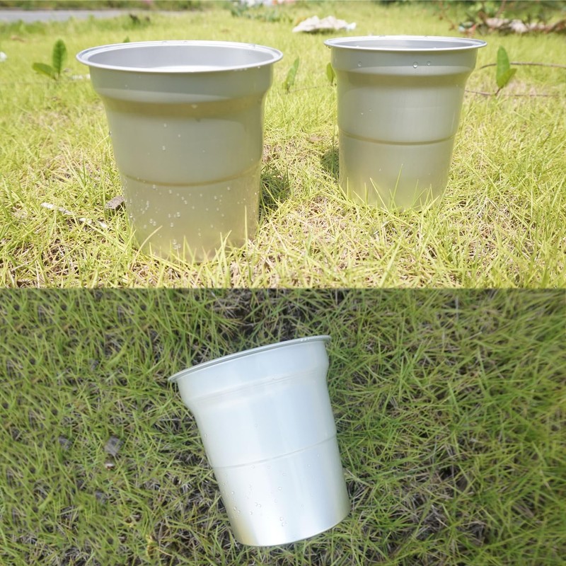 - Recycled aluminum - sustainable alternative and it's more eco-friendly compared to plastic cups. Food grade protective coating, BPA free, safe drink cups keep your drinks cold/ hot for a much longer time