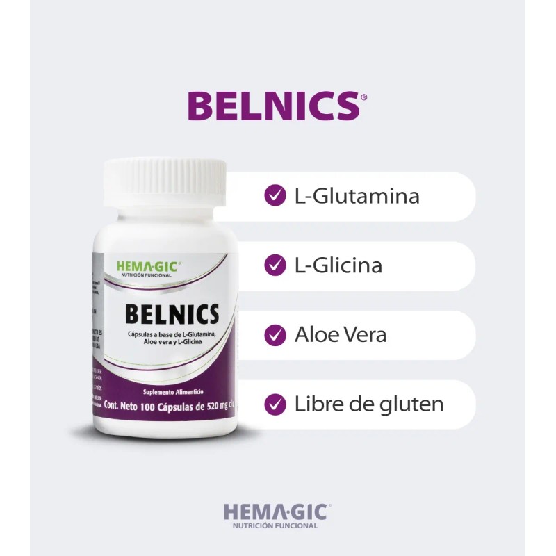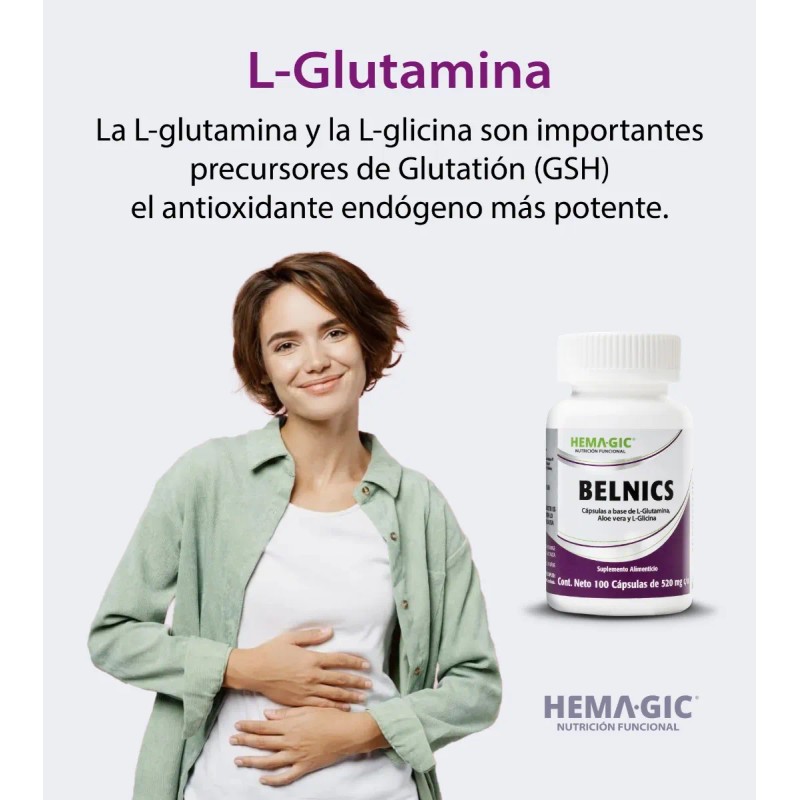 Hemagic Belnics L-glutamina L-glicina Y Aloe Vera - 100 Caps Sin Sabor