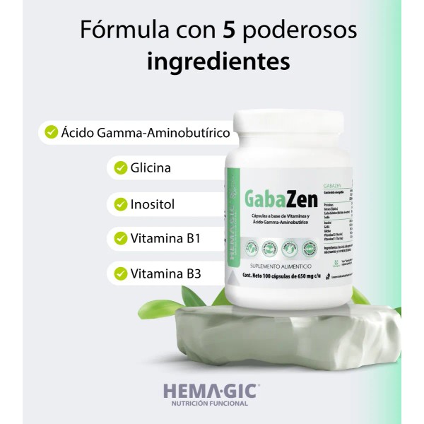 Hemagic Gabazen Gaba Glicina Inositol Vitamina B1 B3 100 Cap Sin Sabor