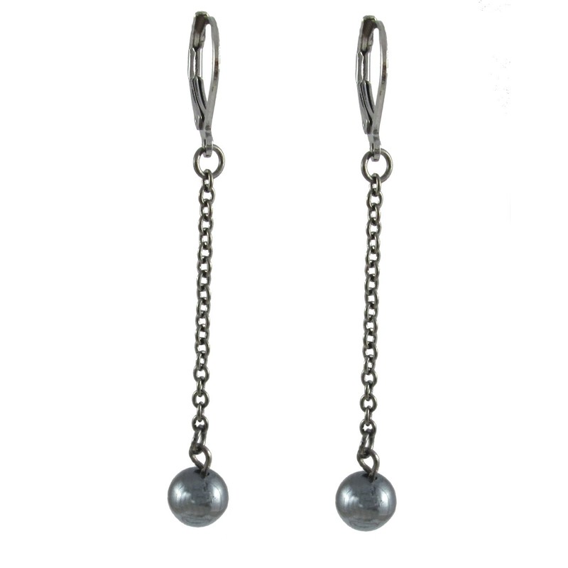 Earrings measure approximately 1 1/2" long and are hung on gunmetal grey lever backs. 6mm round beads *Non magnetic hematite beads