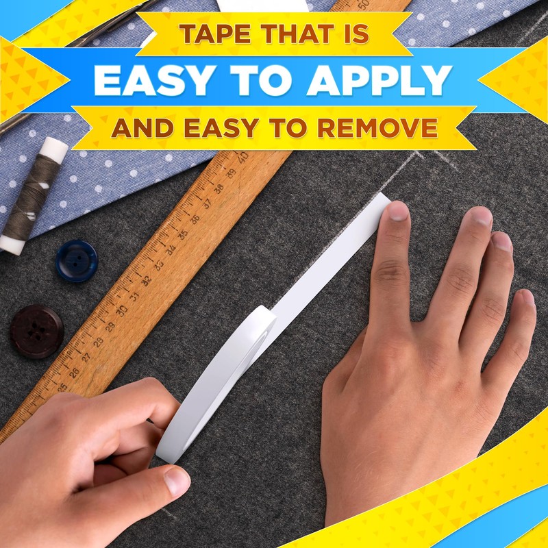 - 🧵 Basting Tape Package Include: 1 roll of removable fabric tape for clothes, measuring 0.25 inches x 60 yards (180 feet). The ultra-thin curtain tape no sew works for hemming, bonding & fabric repairs