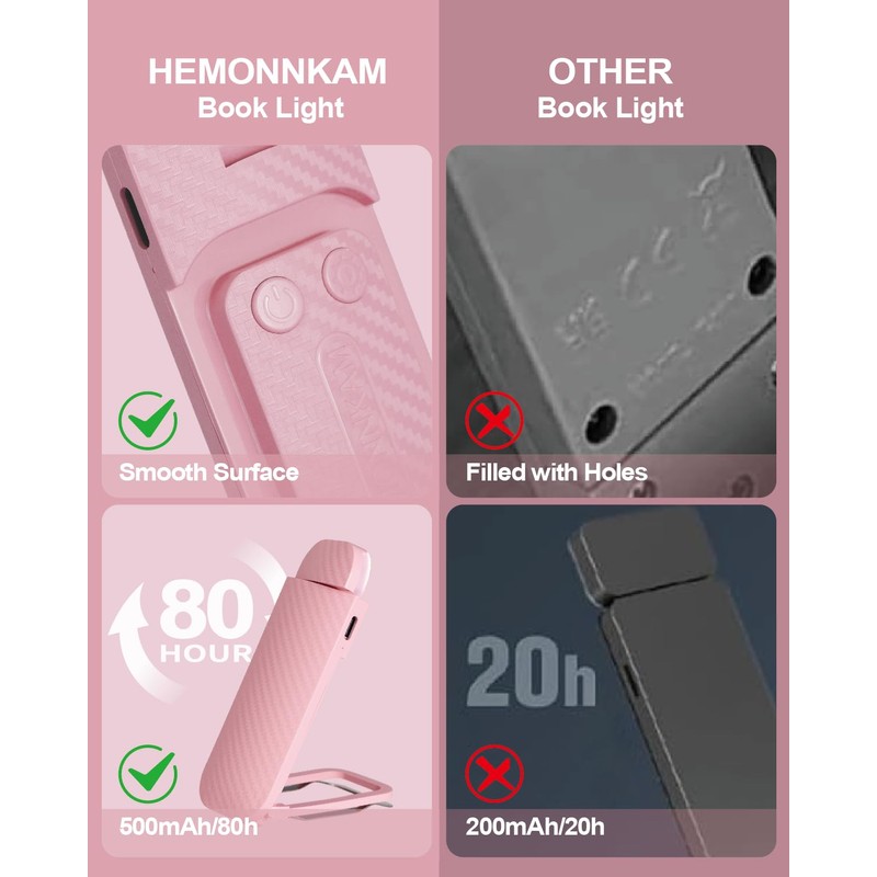 HEMONNKAM Reading Book Light, Clip on Reading Light, Rechargeable Reading Light, Book Lights for Reading at Night in Bed, Reading Lights for Books in Bed, Book Reading Light Clip, Pink
