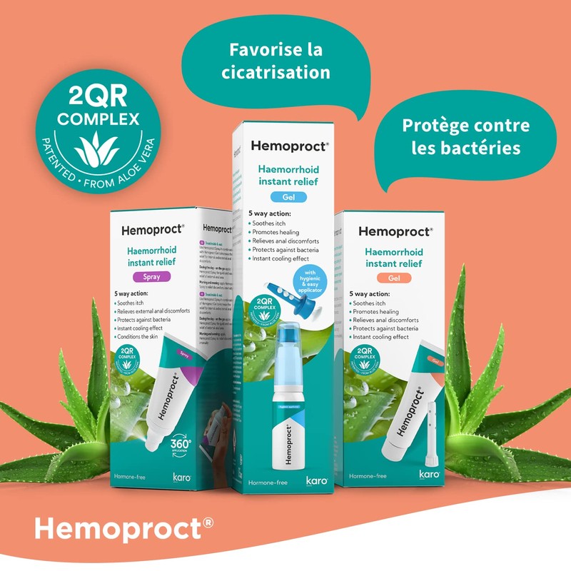 - HEMOPROCT NATURAL HAEMORRHOID GEL - Our soothing ointment provides instant cooling relief from hemorrhoid (pile) symptoms and anal discomforts such as irritation, itching, tingling and tenderness. Our treatment is made with patented ingredient 2QR complex purified from Aloe Vera leaves, the solution protects against bacteria and promotes natural healing.