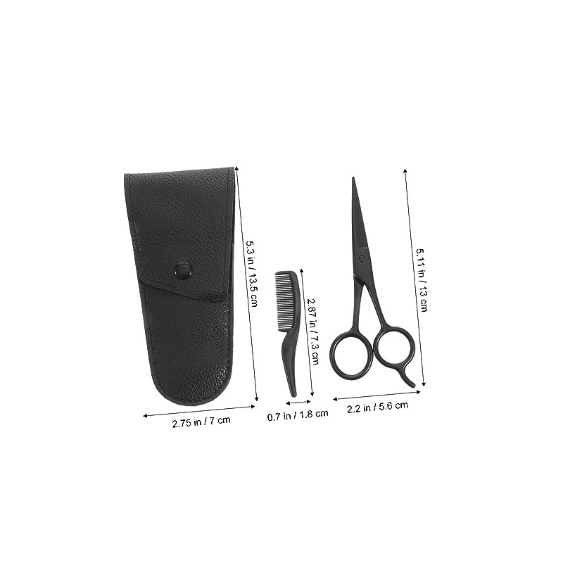 Hemoton 3pcs Mustache and Eyebrow Trimming Scissors Set Stainless Steel Beard Shears with Comb Pu Leather Storage Bag for Home Barbershop Durable Grooming Kit for Men