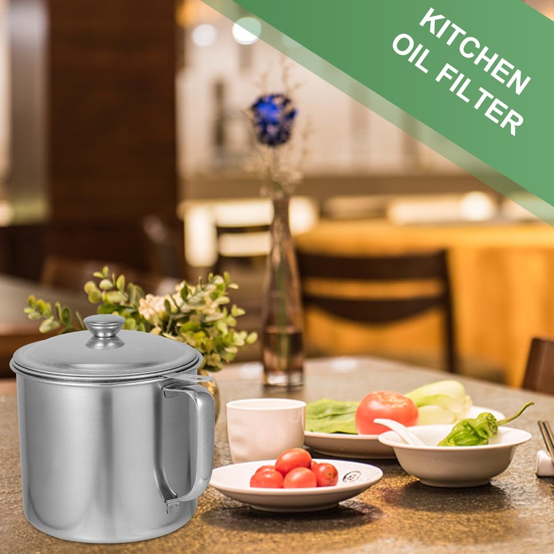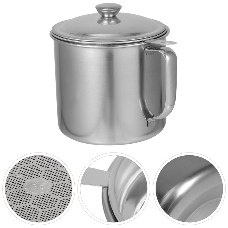 - Stainless Steel 1. 4L Oil Storage Cup Oil Strainer Cup Oil Container