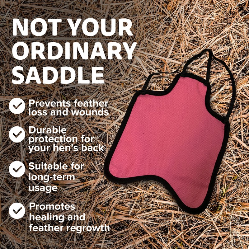 - Not just a fashion statement, our Hen Saver poultry saddle serves as a back protector and promotes healing and feather regrowth by covering areas of feather loss and wounds so that your hens can remain with the flock instead of being cooped up. The notched base is tailor-made to accommodate your hen's tail feathers, ensuring maximum comfort and functionality for a wide range of chicken sizes - whether you have one bantam hen or a whole flock of larger standard-breed chickens, we have hen saddles that fit!