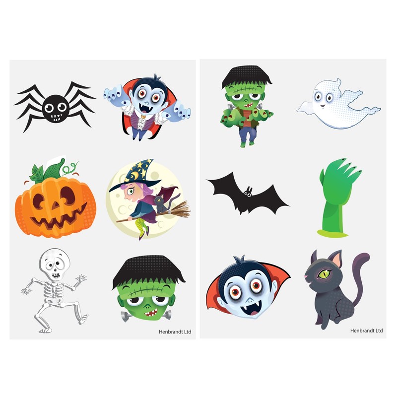 Henbrandt Halloween Game Night Party Pack with 14-Piece Stick the Boo on the Ghost Party Game + Halloween Temporary Tattoos + Stickers for Kids Trick or Treat Activity Game for Boys and Girls