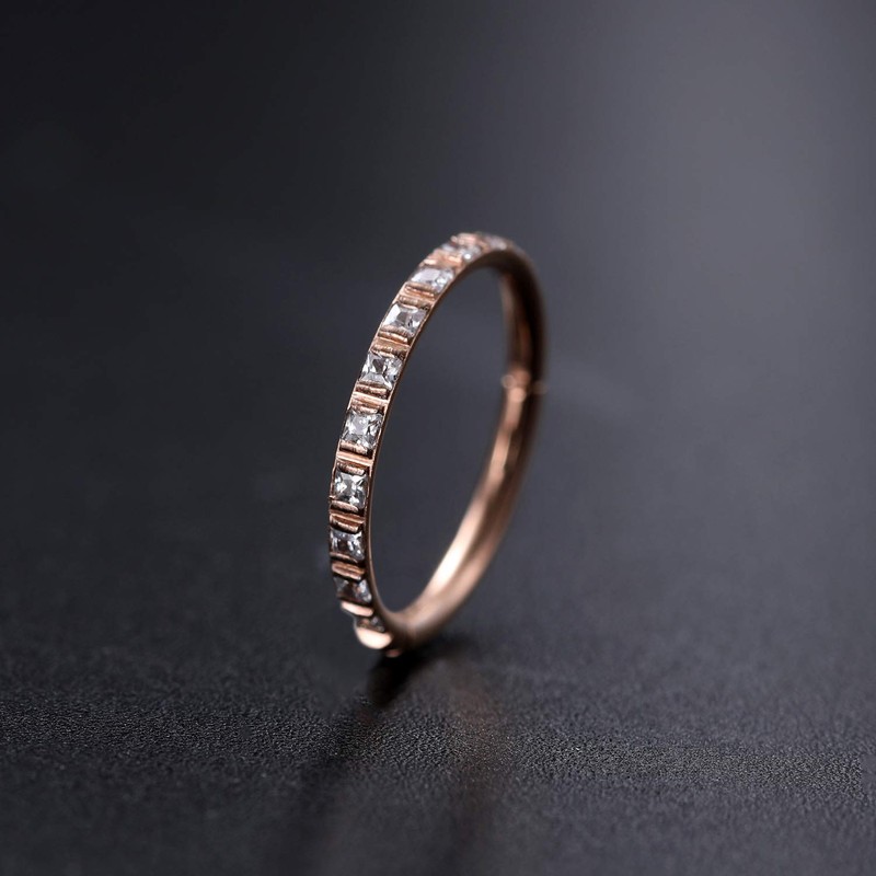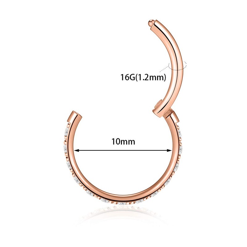 - 【Color & Size】Rose gold with square clear cubic zirconia; Thickness: 16G (1.2mm); Inner diameter 8mm.