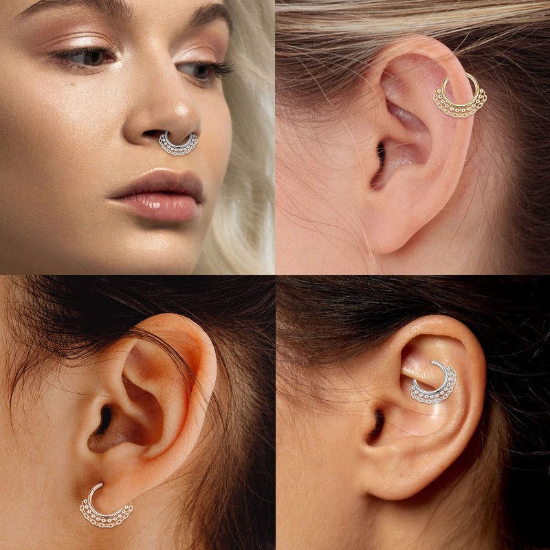 - Multiple uses: The seamless clicker ring is perfect for septum piercing jewellery, daith piercing jewellery, rook earrings, nose hoop rings, rock earrings, snug piercing, shell piercing jewellery, helix earrings, cartilage earrings, tragus piercing jewellery and more.