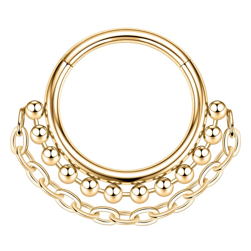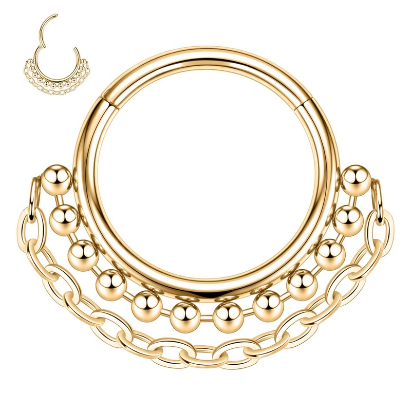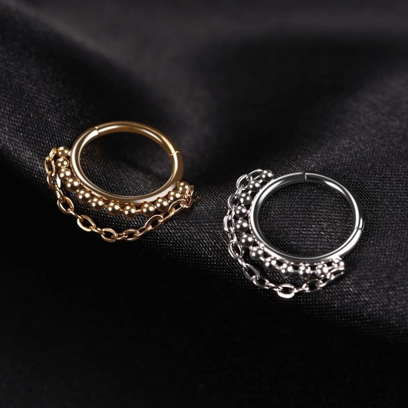 - Design: This septum ring has a row of beads and a chain at the bottom, making it more fashionable and cute. When you wear it, you will be different from the crowd and show your personality.