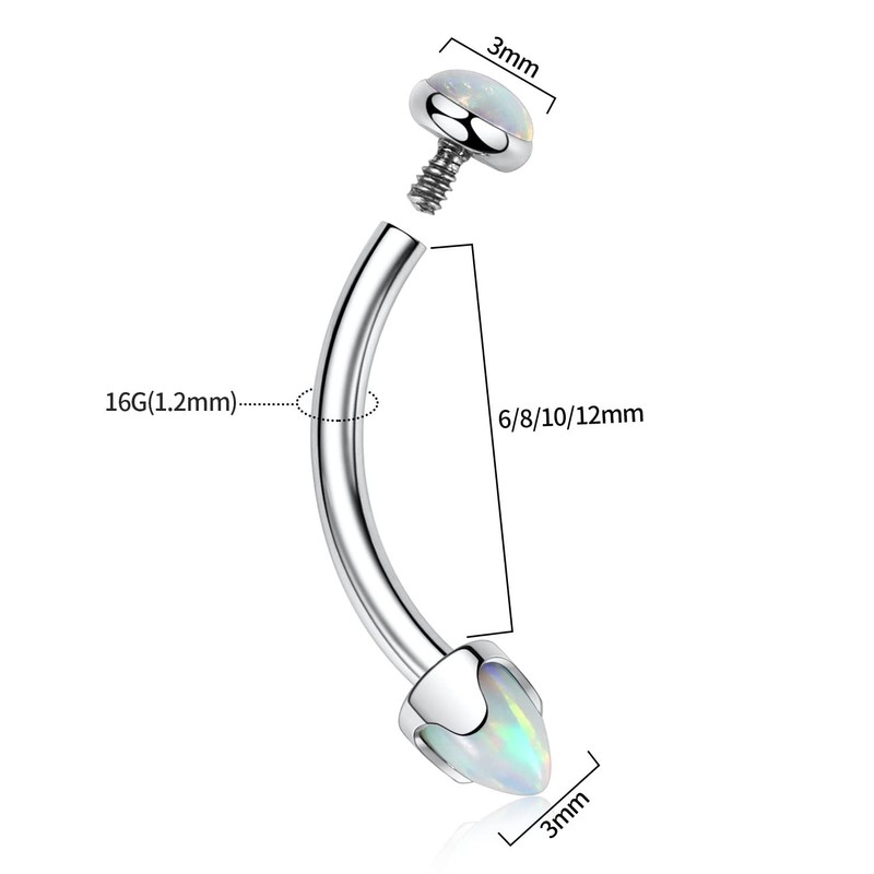 - ✿Gauge✿16G (1.2mm), Length: 5/16 inch (8mm), Opal Size: 1/8 inch (3mm) Opal shape: disc + ball shape, opal colour: white. Common size for eyebrow piercing.