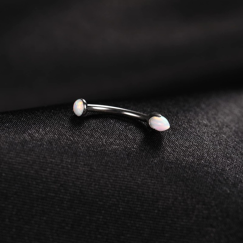 - Material: This eyebrow jewellery is made of G23 titanium (nickel-free, lead-free, cadmium-free) and chic opal. It is harmless to human body, safe and healthy, softer than 316L surgical steel. It is also very well polished, comfortable to wear, no sharp edges.