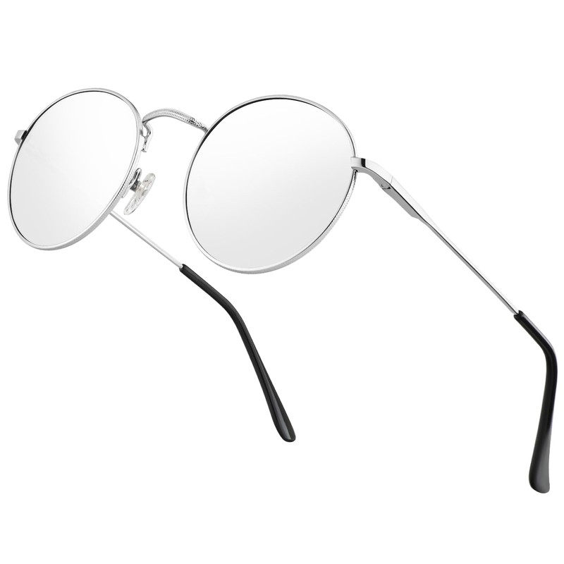 HENGOSEN Men's Round Sunglasses, Polarised Round Sunglasses, Retro Metal Frame, Sunglasses for Men and Women, 08-silver/silver