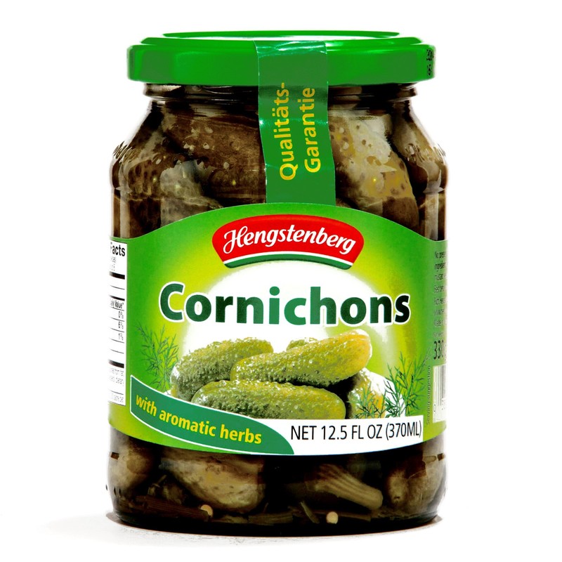 - The Hengstenberg Cornichons are petite, crunchy and piquant, making them ideal for snacking right out of the jar! We also love them on a kaiser roll with bratwurst and spicy mustard