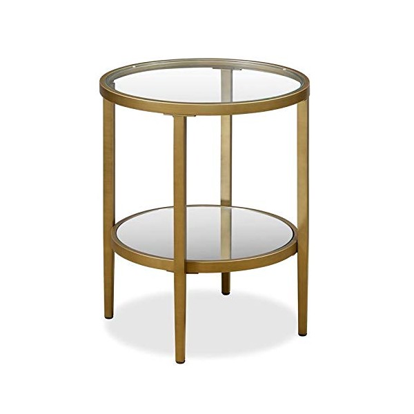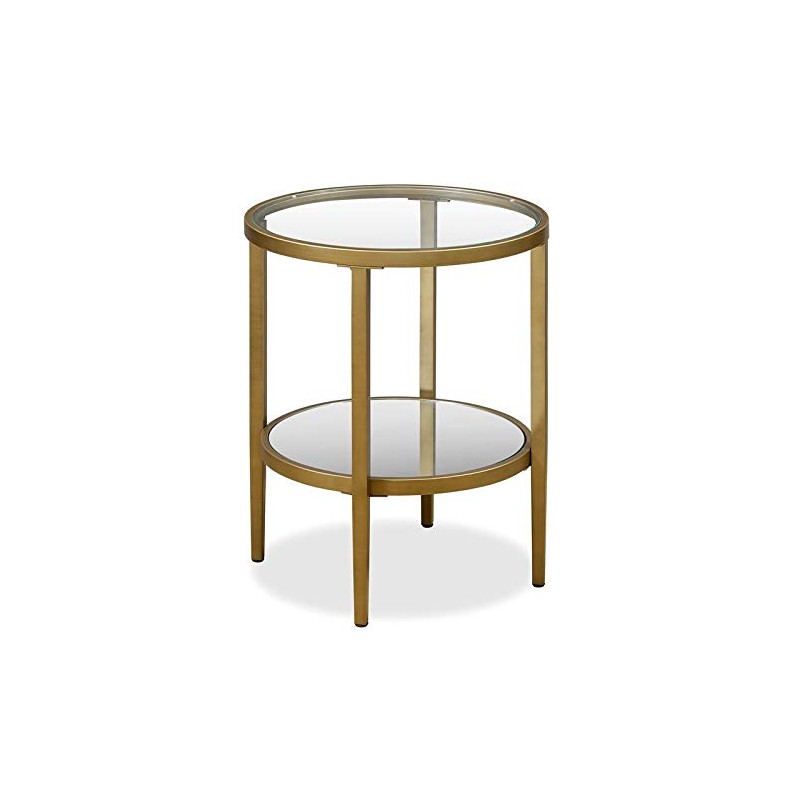 Henn&Hart Glass Side End Table with Shelf in Gold Brass
