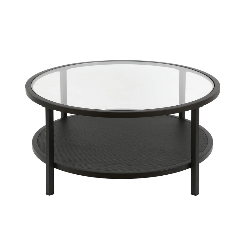 Henn&Hart Industrial Round Coffee Open Shelf Storage, Blackened Bronze Finish Table, Black