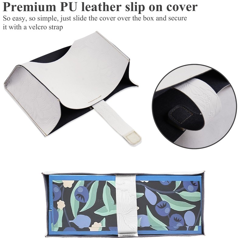 - Use: This cover is intended for placing the box upright on a surface, not for placing the box upside down on a towel rack.