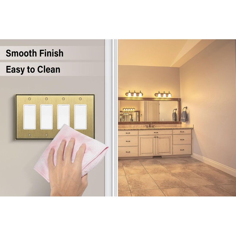 Henne Bery Soft Modern Decorative Wall Plate Switch Plate Outlet Cover (Quad Decorator, Antique Brass)
