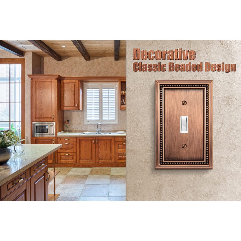 Henne Bery Sunken Pearls Decorative Wall Plate Switch Plate Outlet Cover (Single Toggle, 2 Pack, Antique Copper)