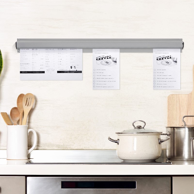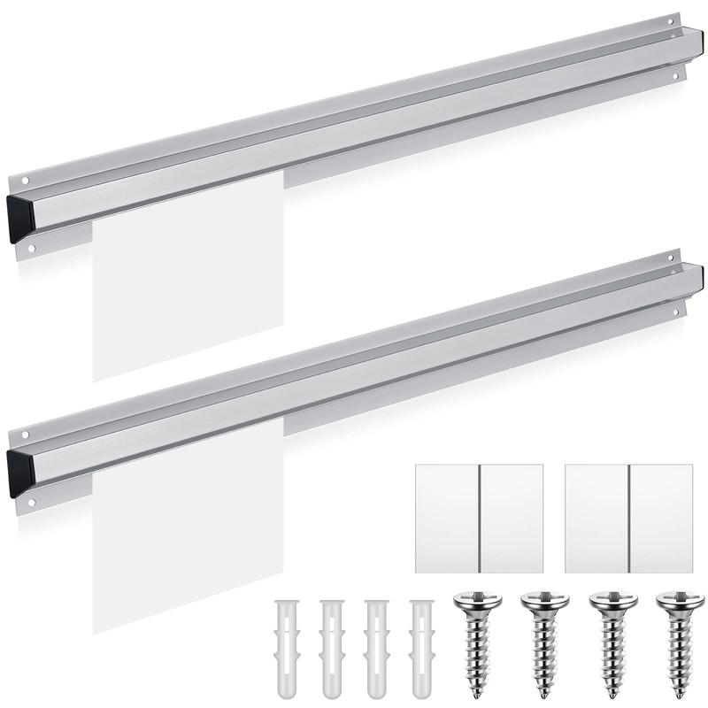 Henoyso 2 Pieces Restaurant Ticket Holder Receipt Holder Aluminum Order Ticket Rack Silver Kitchen Slide Check Rack for Office Cafes Pubs(24 Inch,Square)