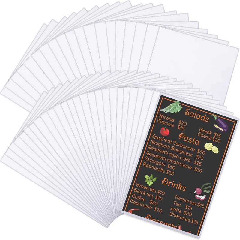 Henoyso 8.5" x 14" Menu Cover Rigid Print Protectors Clear Heavy Duty Menu Holder Poster Protector Sleeve Hard Plastic Paper Sleeves for Page Sheet Photographs Document Birth Certificate (45 Pcs)
