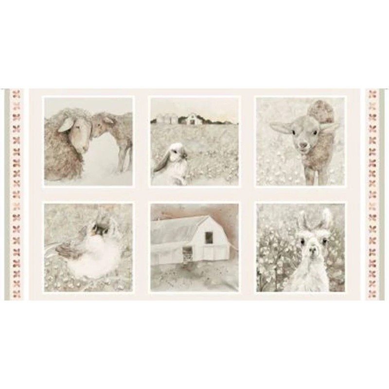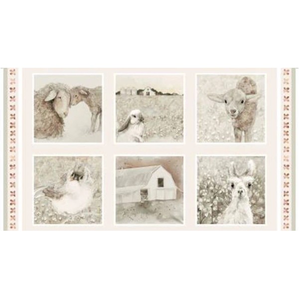 You are Loved, from Henry Glass Fabrics by Dawn Rosengren, in soft colors of dusty rose, taupe, and gray, was inspired by the designer's home farm where she nurtures assorted animals. Along with a panel of llamas, bunnies, birds, and sheep, there is also a cloth book panel and coordinates of florals, dots, gingham, and more. The perfect collection for a little girl's decor or dresses.