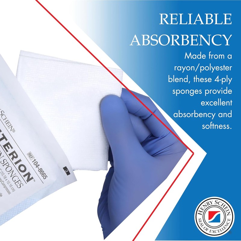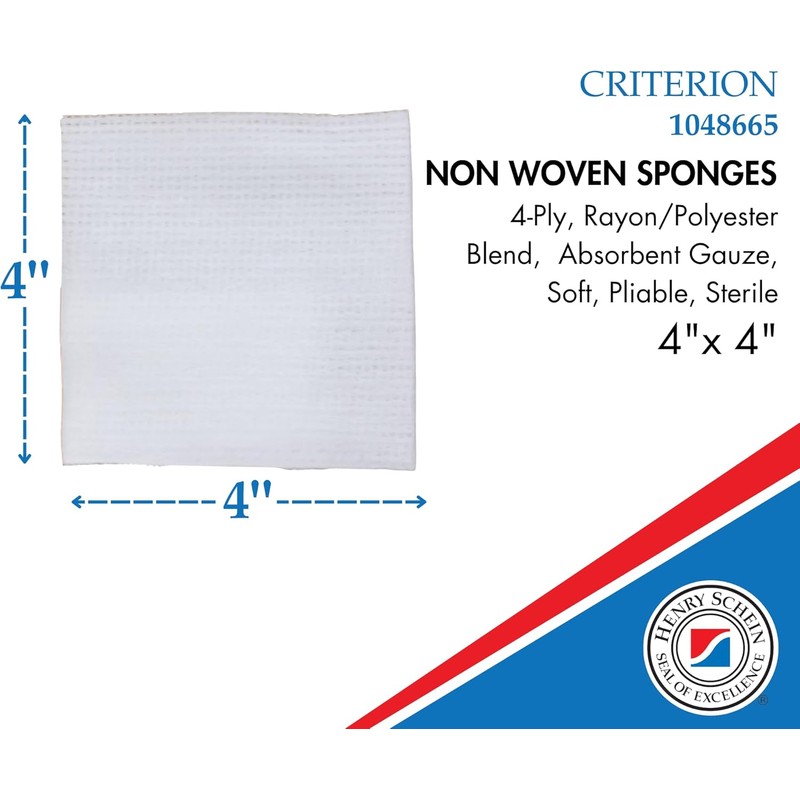 Henry Schein Criterion 4x4” Non-Woven Sponge- Rayon/Polyester Blend, 4-Ply, Sterile- 50/PK