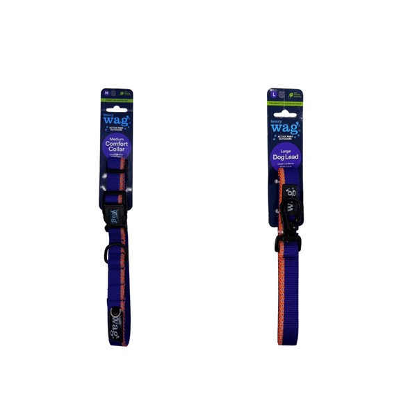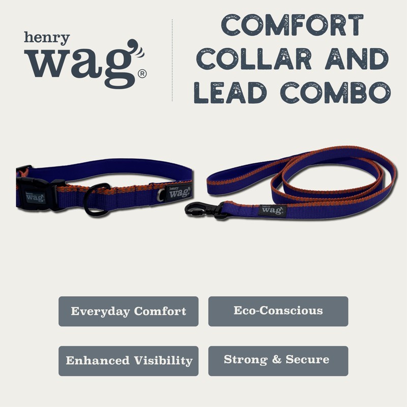 Henry Wag Medium Comfort Collar & Large Lead Combo – Adjustable, Reflective, Soft-Feel Fabric, Sustainable, Purple & Orange