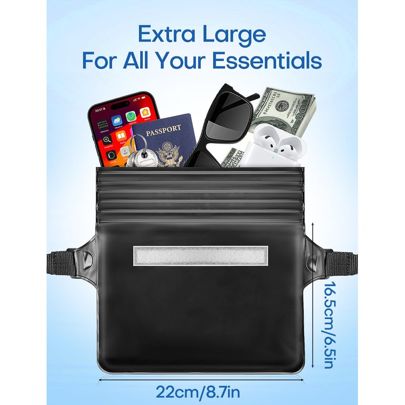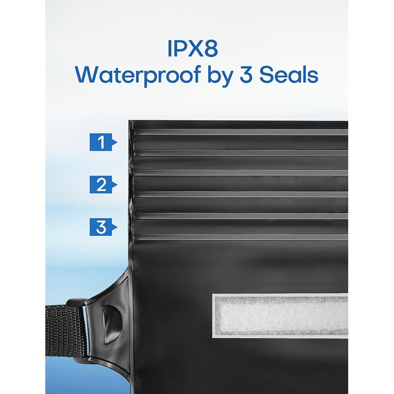 - 100% IPX8 Waterproof This waterproof bag features a triple closure and Velcro closure that ensures excellent waterproofing. Can protect your phone and other items from water, snow, sand and dust. You can enjoy boating, swimming, surfing, kayaking, hiking and many other outdoor activities. ︎